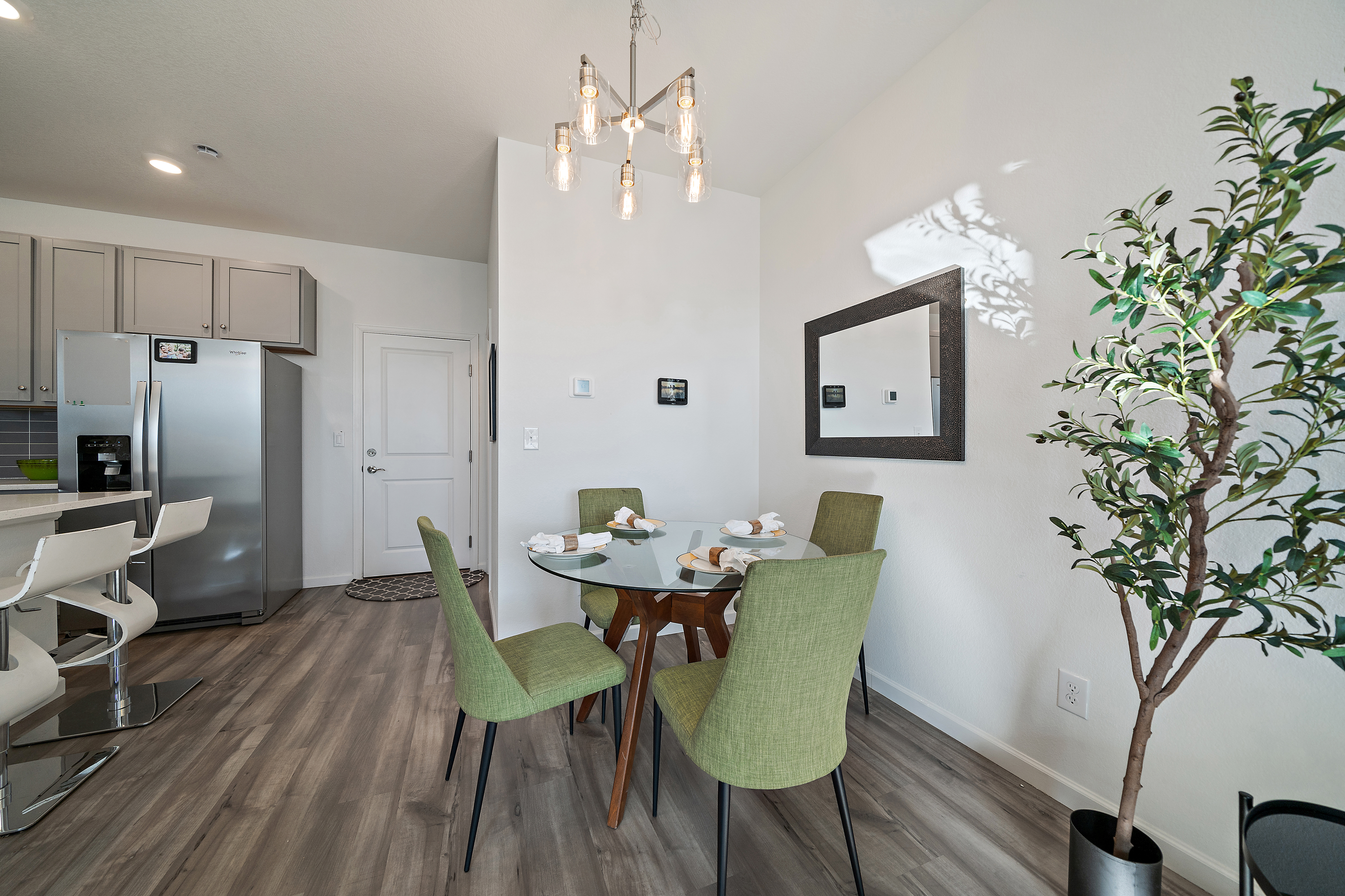 Smart‑home features include a smart garage door opener, smart thermostat, and security system through Alarm.com, plus a tankless water heater with a reducer installed so you can customize your water pressure with ease. Solar panels through ION help offset utility costs and support long‑term energy savings, and a newly installed high‑quality TV mount (ready for 42‑ to 95‑inch TVs) makes it easy to plug right into movie night.